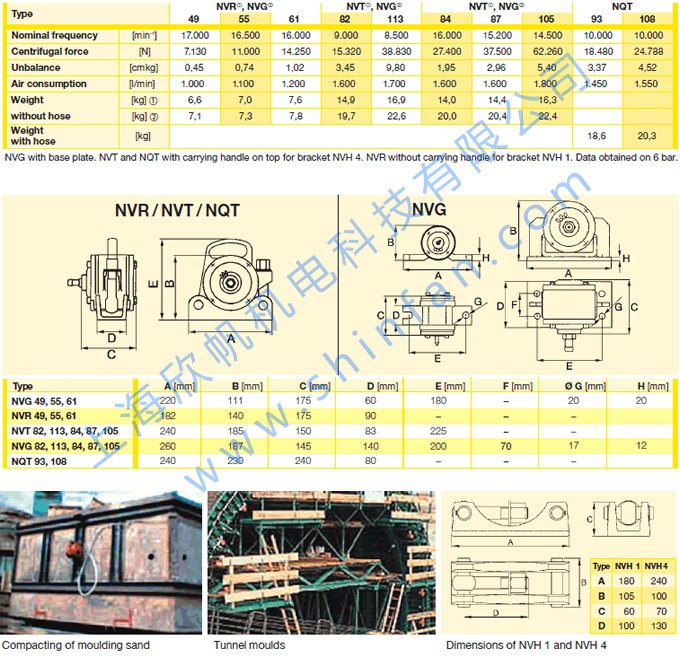 混凝土工程振動額定頻率8.500 - 17.000 分-1離心力7.130 - 62.260無限的空氣壓力變量無軸承輕松快速地移動噪音降低設計NQT● 應用:預制混凝土壓實沖壓成形清空貨車清空大型料斗