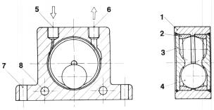 殼體兩端置有尼龍端蓋,用來定位鋼球,同時防止灰塵和水的進入,因此可使本機工作于多塵潮濕的環(huán)境中。進、出氣口均有標準管螺紋,使排氣可由管路引出,確保排氣無障。為適應不同安裝位置,本機上有4個安裝孔:兩個水平,兩個垂直。